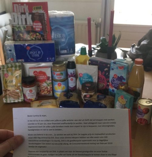 Naar aanleiding van een interview dat ik heb gegeven, kreeg ik een berichtje van een van de grote supermarkten in Nederland: de Dirk. Ik had in het interview namelijk gezegd dat ik, in vaste volgorde, twee supermarkten af ga. Eerst de Lidl, daarna de Albert Heijn. Daar krijg je (natuurlijk) reacties op en zo ook van het product formulemanagement van Dirk. Alleraardigst natuurlijk dat ze mij een berichtje stuurden. En dat pakte best leuk uit!